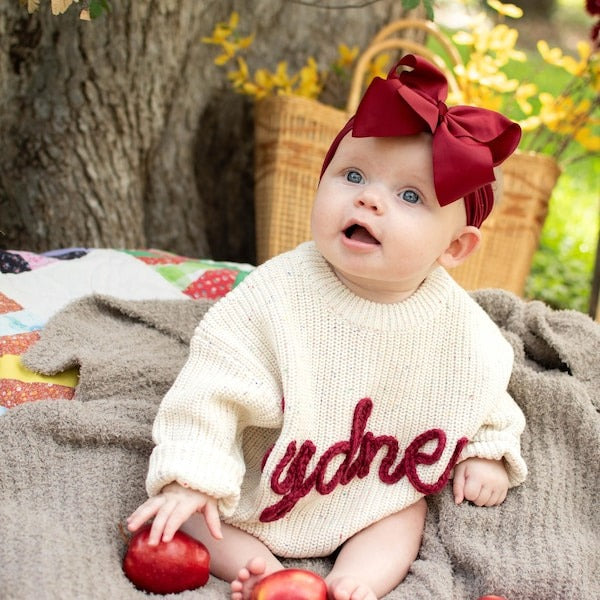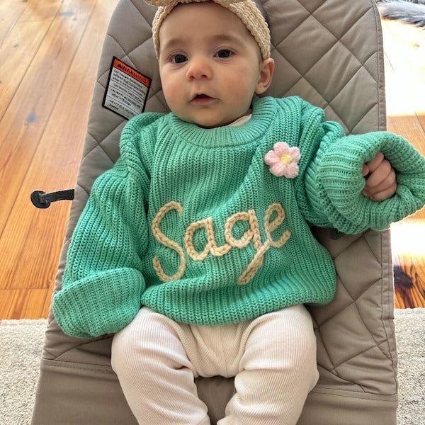 Each sweater is beautifully crafted from soft, cozy knits and personalized with your baby’s name, creating a heartfelt keepsake designed to wrap your little one in warmth, comfort, and love.