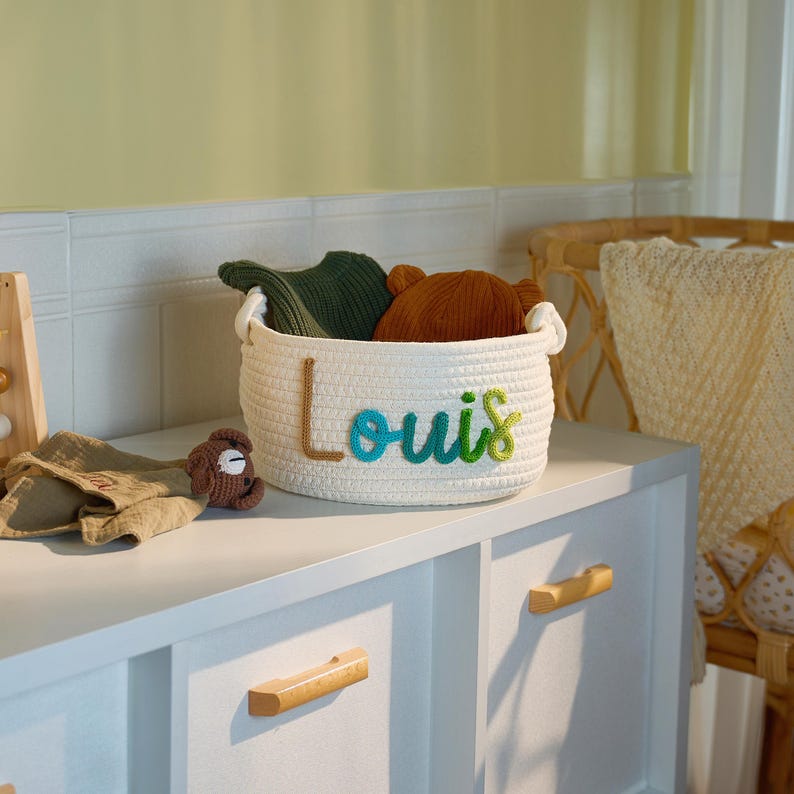 Personalized Handmade Baby Basket I Cord Knitting Craft Cotton Rope Nursery Storage Toy Organizer Christmas Basket Gift For Baby