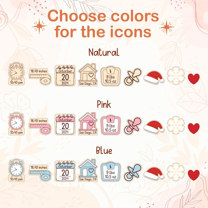 - Materials and Colors: Each ornament is made from three layers of 1/8” acrylic, making the total thickness 3/8”.