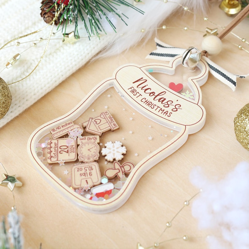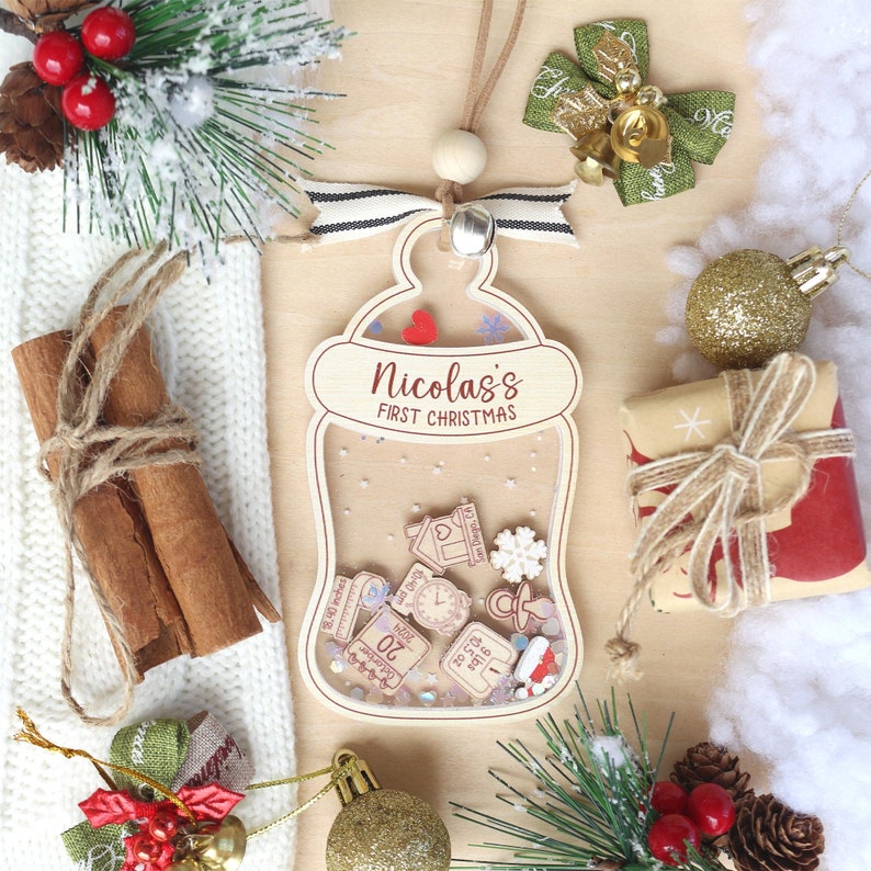 Celebrate your baby's first Christmas with these adorable shakeable ornaments, specially designed to capture this precious moment. Each ornament can be personalized with your baby's name and the year, creating a cherished keepsake for years to come. The playful shakeable design adds a touch of magic, making it the perfect addition to your holiday decorations and a beautiful way to remember your little one's first festive season.