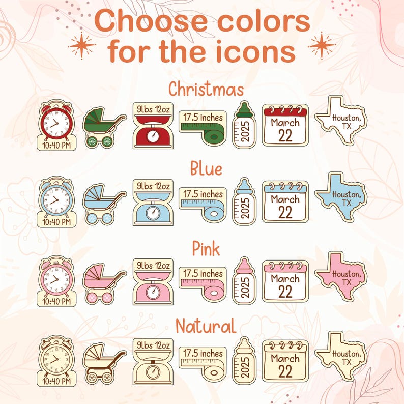 - Materials and Colors: Each ornament is made from three layers of 1/8” acrylic, making the total thickness 3/8”.