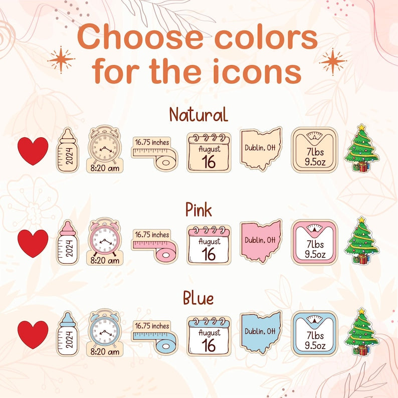 - Materials and Colors: Each ornament is made from three layers of 1/8” acrylic, making the total thickness 3/8”.