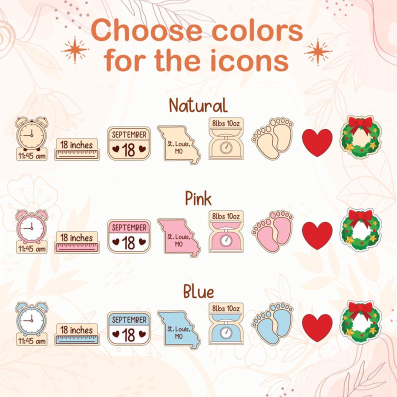 - Materials and Colors: Each ornament is made from three layers of 1/8” acrylic, making the total thickness 3/8”.