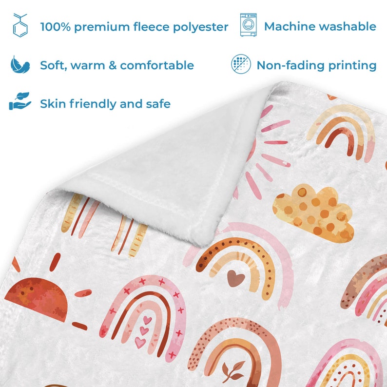Personalized Baby Name Blanket Boho Rainbow Heart Custom Soft Baby Blanket Gift For Mom