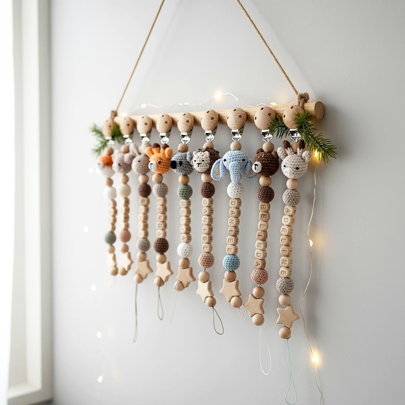 Make every moment with your little one extra special with our Personalized Pacifier Clip with Crochet Animal. Crafted with care, this charming pacifier clip features a delightful crochet animal and a custom wooden name tag, making it an ideal newborn gift for baby showers, birthdays, or just a sweet surprise. The soft and secure clip keeps pacifiers and toys within easy reach, while the crochet animal adds a cute touch to any baby outfit.