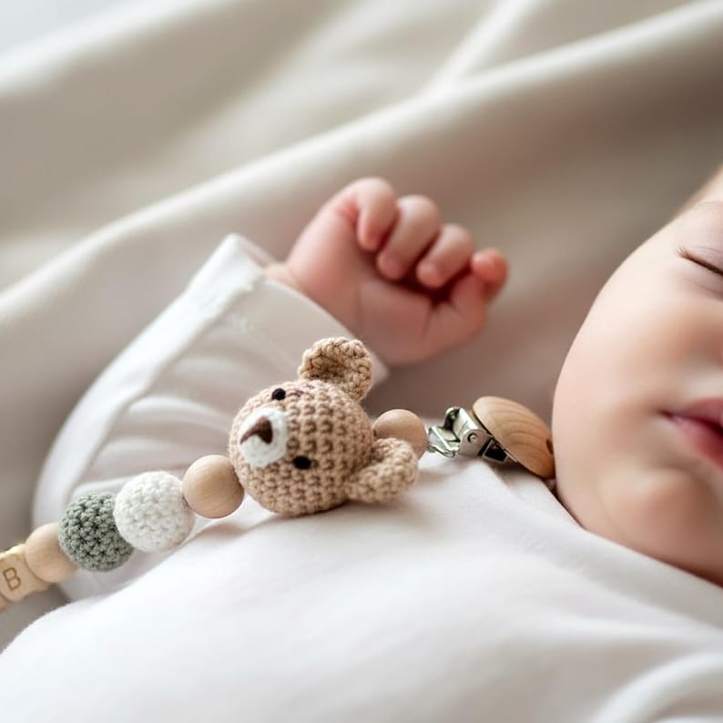 Make every moment with your little one extra special with our Personalized Pacifier Clip with Crochet Animal. Crafted with care, this charming pacifier clip features a delightful crochet animal and a custom wooden name tag, making it an ideal newborn gift for baby showers, birthdays, or just a sweet surprise. The soft and secure clip keeps pacifiers and toys within easy reach, while the crochet animal adds a cute touch to any baby outfit.