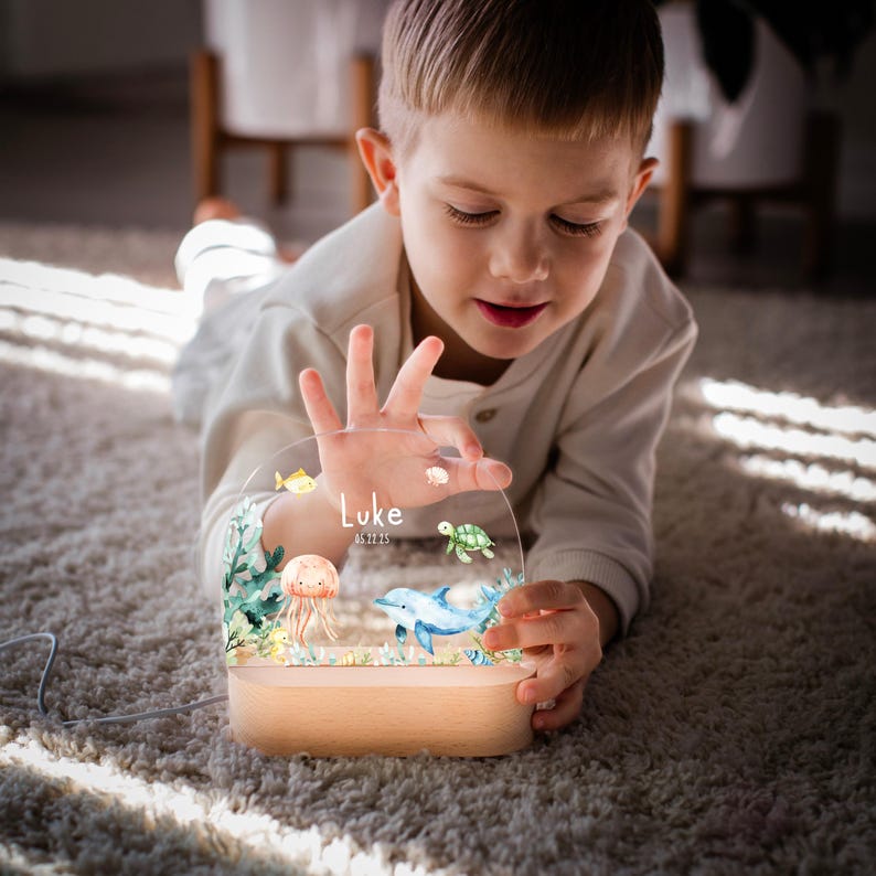 Personalized Sea Animals Baby Night Light Under The Sea Ocean LED Nursery Lamp Gift For Baby